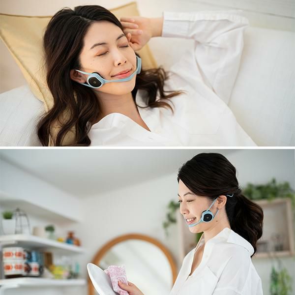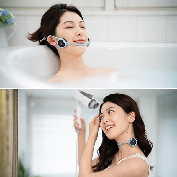 ・超小型のEMSマシンで、顔全体の表情筋を鍛えるだけでなく顔を支える土台の首までハンズフリーで表情筋を鍛えるEMS美顔器