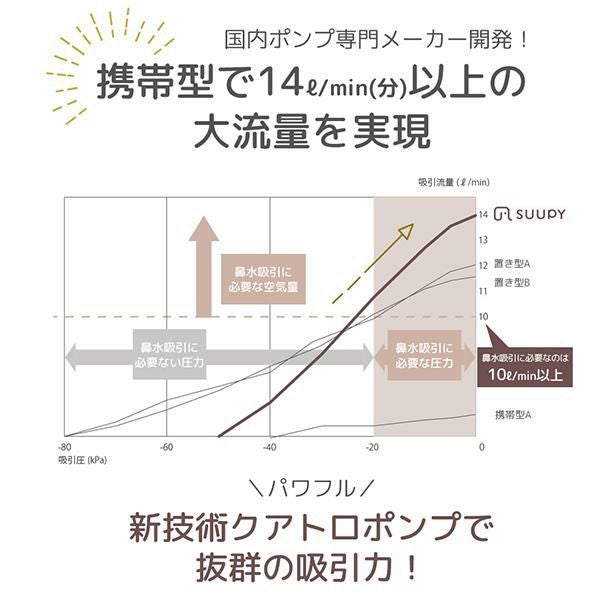 しっかり吸引、携帯性抜群、お手入れ簡単、0歳から大人まで家族みんなで使える電動鼻吸い器「SUUPY」