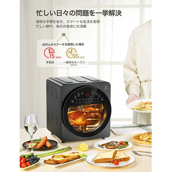EPEIOS エペイオス ノンフライオーブン ベーシックモデル AO247ABJP1 ブラック 熱風循環 上下加熱 3段構造 調理時間短縮 正規品