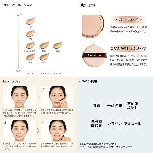 ○パフは清潔な状態で使用し、使用後はティッシュペーパーなどでファンデーションを拭き取ってください。