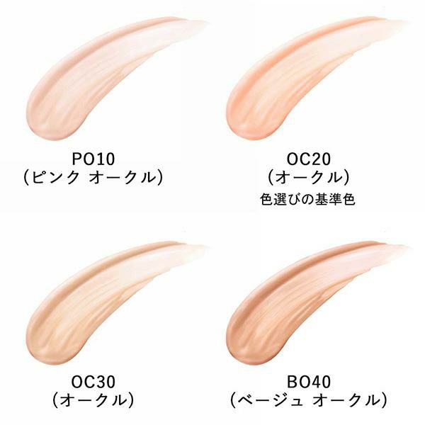 【BO40(ベージュ オークル)】水、ラウリン酸メチルヘプチル、スクワラン、ペンタイソステアリン酸ポリグリセリル-10、プロパンジオール、ペンタヒドロキシステアリン酸ポリグリセリル-10、グリセリン、ミリスチン酸イソセチル、イソステアリン酸、ジグリセリン、ステアリン酸亜鉛、セスキイソステアリン酸ソルビタン、ステアリン酸、水酸化Al、クエン酸Na、フェノキシエタノール、BG、ベルガモット果実油、トコフェロール、マンダリンオレンジ果皮油、ヒアルロン酸Na、ニオイテンジクアオイ油、α-グルカン、グリチルリチン酸2K、アシタバ葉/茎エキス、グルコシルセラミド、スイゼンジノリ細胞外多糖体、酸化チタン、酸化鉄、マイカ、アルミナ