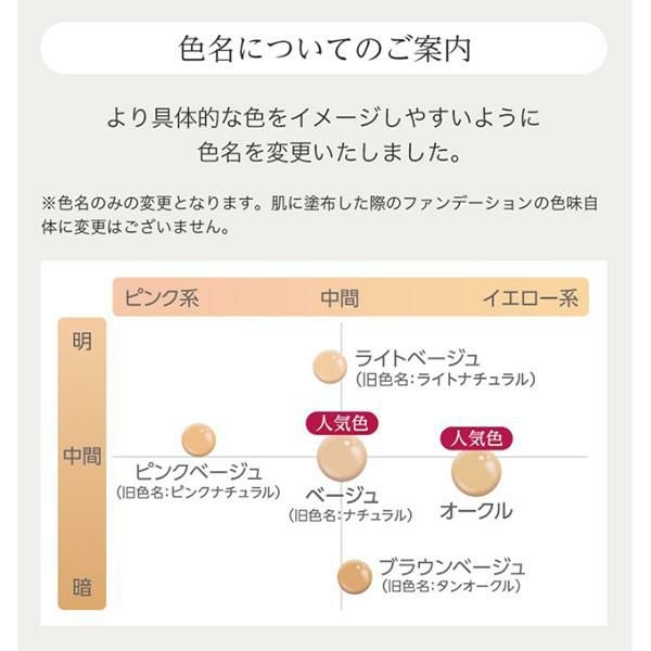 【その他の成分】精製水、デカメチルシクロペンタシロキサン、酸化チタン、微粒子酸化チタン、非晶型酸化チタン、1,3-ブチレングリコール、ポリオキシエチレン・メチルポリシロキサン共重合体、トリ(カプリル・カプリン酸)グリセリル、トリイソステアリン酸ジグリセリル、2-オクチルドデカノール、1,2-ペンタンジオール、水酸化アルミニウム、ジイソステアリン酸ポリグリセリル、ステアリン酸亜鉛、ヒアルロン酸ナトリウム(2)、ジメチルシラノール・ヒアルロン酸縮合液、アセチル化ヒアルロン酸ナトリウム、イソステアロイル加水分解コラーゲン液(2)、サクシニルアテロコラーゲン液、水溶性コラーゲン液(1)、加水分解コラーゲン液(4)、d-δ-トコフェロール、テトラ2-ヘキシルデカン酸アスコルビル、リン酸L-アスコルビルマグネシウム、ジカプリル酸ピリドキシン、パルミチン酸レチノール、グルコシルヘスペリジン、ラン抽出液、アロエ液汁末(2)、オリーブ葉エキス、酵母エキス(3)、ユズエキス、カッコンエキス、アルニカエキス、オトギリソウエキス、セイヨウキズタエキス、マロニエエキス、ハマメリスエキス、ブドウ葉エキス、水素添加大豆リン脂質、架橋型メチルポリシロキサン、メチルポリシロキサン、L-グルタミン酸ナトリウム、ヒドロキシステアリルフィトスフィンゴシン、フィトステロール、デキストリン、ジメチルジステアリルアンモニウムヘクトライト、セリサイト、塩化ナトリウム、ステアリン酸、キサンタンガム、アラビアゴム、ビオチン、アルテミアエキス、セイヨウノコギリソウエキス、メマツヨイグサ抽出液、加水分解コラーゲン末、ヘキサメチレンジイソシアネート/トリメチロールヘキシルラクトン架橋ポリマー、酸化アルミニウム、無水ケイ酸、植物性スクワラン、グリセリン、酵母エキス(4)、ソルビット、海藻エキス(1)、カモミラエキス(1)、スターフルーツ葉エキス、ウメ果実エキス、オウゴンエキス、シャクヤクエキス、ヒメフウロエキス、クエン酸ナトリウム、クエン酸、フェノキシエタノール、酸化亜鉛、モンモリロナイト、低温焼成酸化亜鉛、黄酸化鉄、黒酸化鉄、ベンガラ、タルク、マイカ