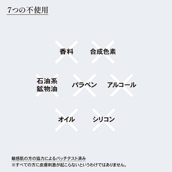 ※弱酸性、香料・合成色素・石油系鉱物油・アルコール・オイル・パラベン・シリコン不使用