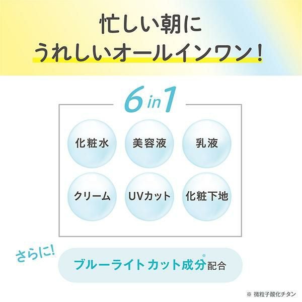 水、BG、パラメトキシケイ皮酸2-エチルヘキシル、イソノナン酸イソノニル、トリ2-エチルヘキサン酸グリセリル、濃グリセリン、微粒子酸化チタン、ジカプリン酸ネオペンチルグリコール、2-[4-(ジエチルアミノ)-2-ヒドロキシベンゾイル]安息香酸ヘキシルエステル、L-アスコルビン酸 2-グルコシド、リン酸L-アスコルビルマグネシウム、3-O-エチルアスコルビン酸、豆乳発酵液、アラントイン、dl-α-トコフェリルリン酸ナトリウム、D-パントテニルアルコール、塩酸ピリドキシン、(エイコサン二酸/テトラデカン二酸)デカグリセリル液、無水ケイ酸、オキシ塩化ビスマス、エタノール、キサンタンガム、グリセリンモノ2-エチルヘキシルエーテル、ジェランガム、ダイズエキス、ビタミンE、ポリアクリル酸塩、ポリエチレングリコール・デシルテトラデセス-20・ヘキサメチレンジイソシアネート共重合体、ポリオキシエチレン・メチルポリシロキサン共重合体、ポリオキシエチレン2-ヘキシルデシルエーテル、メチルハイドロジェンポリシロキサン、雲母チタン、架橋型メチルポリシロキサン、含水ケイ酸、酸化チタン、水酸化アルミニウム、フェノキシエタノール