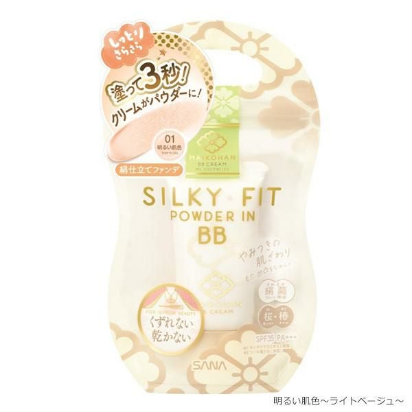 内側にうるおいを閉じ込めて、表面はさらさらの絹繭フィット構造。シルキーフィットパウダー(※1)が毛穴・凹凸をぼかしてカバー。桜の花エキス・椿オイル(※2)配合で日中もしっとり。
