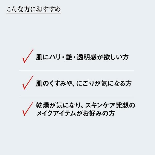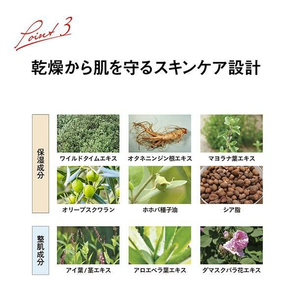 さらに、メイク中の肌をしっとりと整えるスキンケア設計で、ワイルドタイムエキス・オタネニンジン根エキス・マヨラナ葉エキス*2が複合的に作用します。