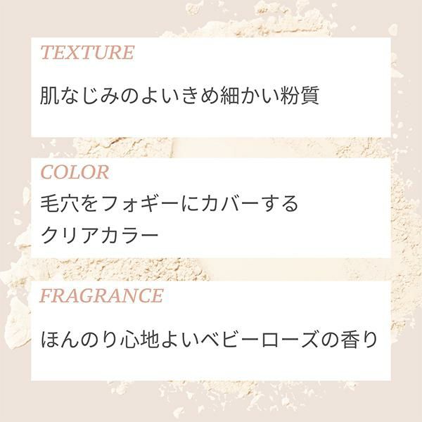 ■成分/タルク、ジメチコン、ポリメタクリル酸メチル、ラウロイルリシン、(ステアロキシメチコン/ジメチコン)コポリマー、ジフェニルシロキシフェニルトリメチコン、ステアリン酸Mg、PCAジメチコン、ミリスチン酸Mg、ホウケイ酸(Ca/Al)、ナイロン-12、月見草油、アロエベラ葉エキス、ビスブチルジメチコンポリグリセリル-3、アモジメチコン、セスキイソステアリン酸ソルビタン、シリカ、ジステアリルジモニウムクロリド、トコフェロール、水、BG、クロルフェネシン、香料、合成金雲母、マイカ、硫酸Ba、酸化鉄