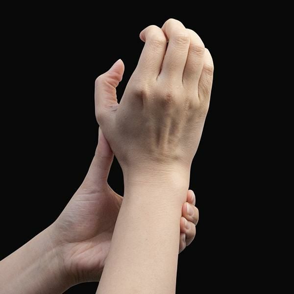 特殊ゲル素材で安心・快適。肌色タイプで目立ちにくい。水仕事、お風呂OK、動いても密着、ズレにくい。手首に添ったフォルム、内側のボーン、薄さ約2mm 整形外科医との共同開発 具志堅先生 左右兼用、男女兼用