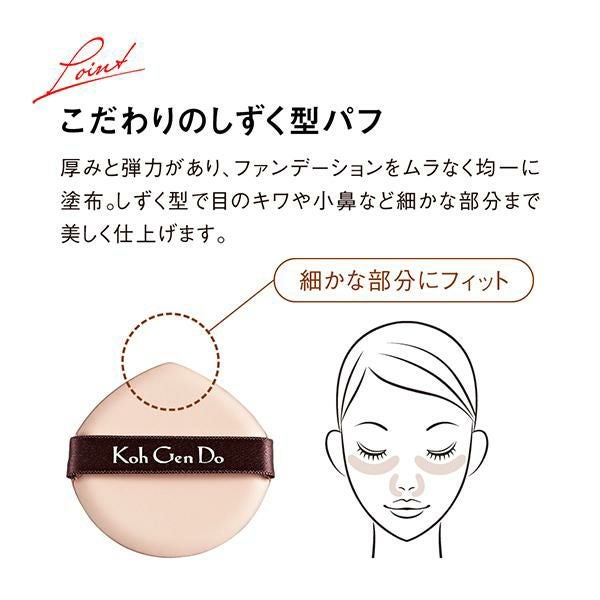 しずく型形状で目のキワや小鼻などの細部までムラなくフィットし、自然な艶と理想の美肌を叶えます。
