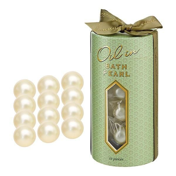 まるでパールのような保湿オイル入り入浴料が、たっぷり12粒入ったギフトボックス。湯船に入れると心地よいシャルドネアロマとうるおいケア成分が溶け出し、湯ざわりまろやかな乳白の湯が楽しめます。自分へのご褒美にも。白ぶどう果汁があふれだすような、みずみずしく爽やかなシャルドネの香り。