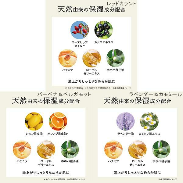 ラベンダー&カモミール:ラベンダーやグリーンハーブが重なり合う心落ちつく香り。