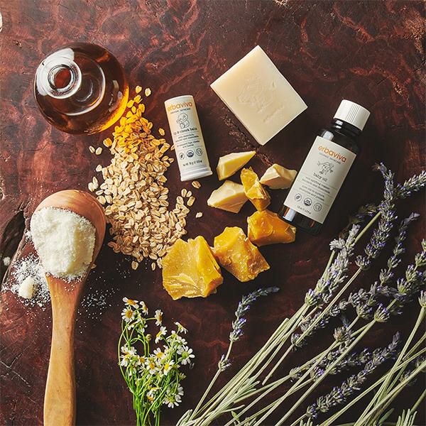 ※ヒマワリ種子油、※アーモンド油、※コムギ胚芽油、※カニナバラ果実油、※ローズマリー葉エキス、トコフェロール、※ラベンダー油、※マンダリンオレンジ果皮油、※フサヌススピカツス木油、※ニンジン種子油、※ニオイテンジクアオイ油、※ダマスクバラ花油(※は有機栽培原材料)