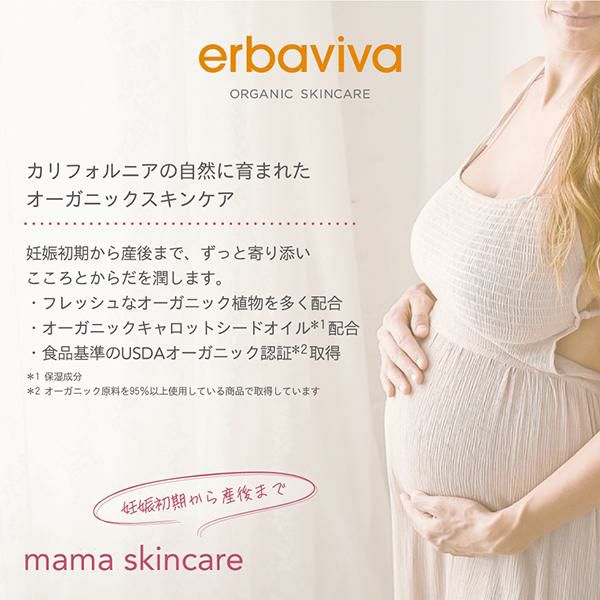 お腹まわりを中心とする、乾燥が気になるママのボディケアに最適なマッサージオイル。オーガニックキャロットシードオイル※を配合で、肌の柔軟性を高め、ハリとうるおいを与えます。夜のご使用がおすすめです。