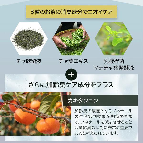 3種のお茶の恵みで、潤いと清潔感を。ニオイを洗い流し、上品なティームスク香るしっとり健やかな肌へ。