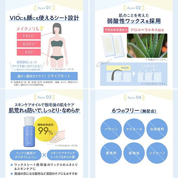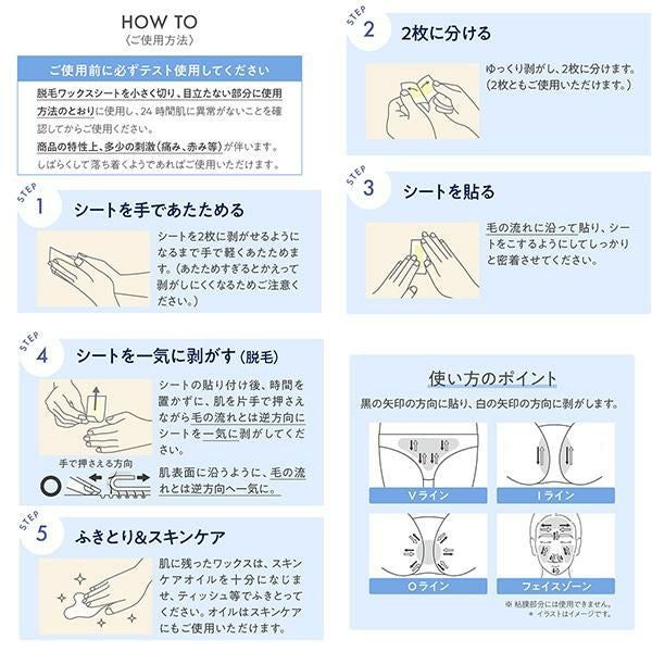 VIOや顔にも使用可能な部分用脱毛ワックスシート(スキンケアオイル付き)