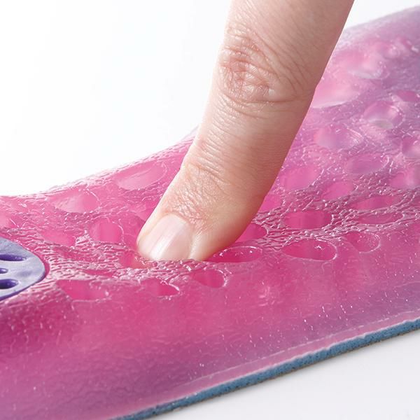 弾力性と伸縮性のあるぷにぷにTPEゲルで足にかかる衝撃を吸収。膝と腰がラクになり正しい歩行に導きます。