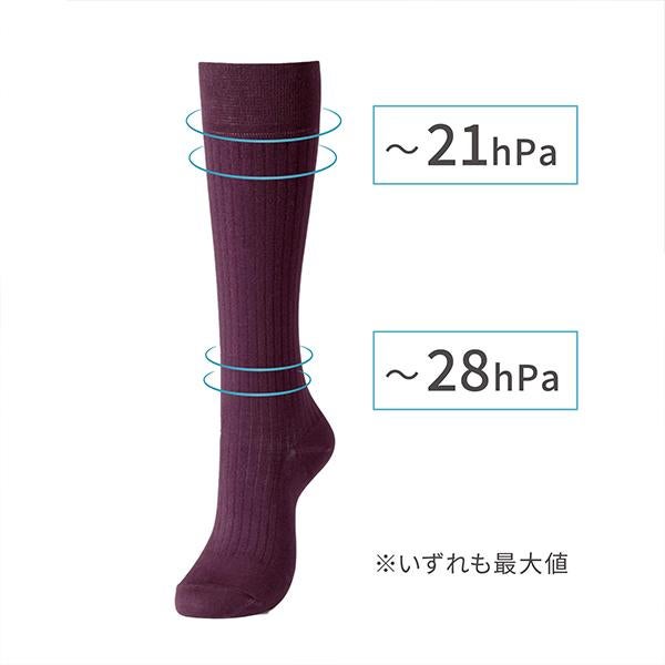 最大28hPa(21mmHg)の医療グレードの着圧で、しっかりむくみをケア。血行やリンパのながれを促進し、つらい脚のむくみを予防・改善します。