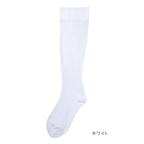 【一般医療機器届出済】足首最大32hPaの一般医療機器の設計により、気になる脚のむくみを予防・軽減。脚もとに軽やかな抜け感を演出する、ナイロン製のシアー着圧ソックスです。