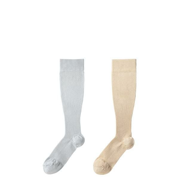 足元にさりげない華やぎを添える、上品なラメの着圧ソックスです。カラーはさりげない華やかさをプラスするシルバーとゴールドの2色展開。どちらも主張しすぎず上品なきらめきで、きちんと感のある装いにも好相性。いつものコーディネートを格上げしてくれます。