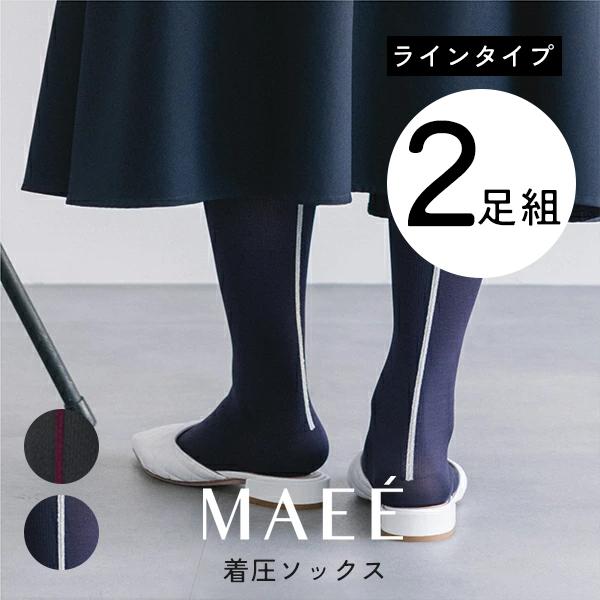 MAEE コンプレッションソックス ラインタイプ 2枚セット着圧ソックス むくみケア 血行促進 リンパのながれ促進 むくみ予防・軽減 ウーリーナイロン繊維 正規品 メール便1通1個まで可 ギフト可