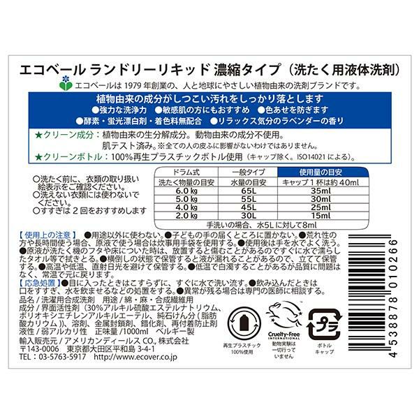 エコベール ランドリーリキッド濃縮タイプ 1000ml 濃縮タイプ 強力 敏感肌 着色料無 正規品 ギフト可