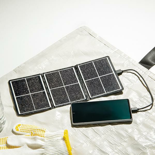 ポケットサイズの持ち歩きに便利な充電器。もしもの備えに!小さい、薄い、軽い、備えて安心、持ち歩き便利なポケットサイズのソーラーパネル。差し口タイプA。