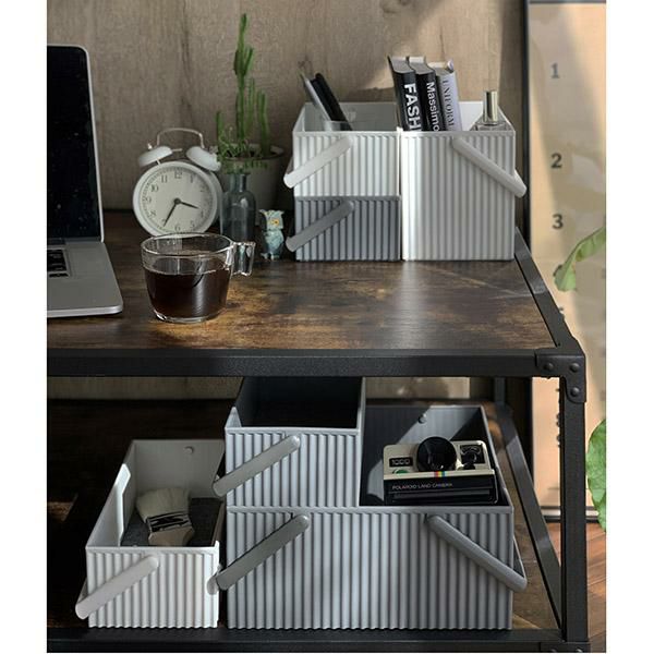 波々のデザインが特徴の持ち運びに便利なキャリータイプの収納ボックス