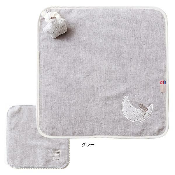 ラトルが付いた小さめタオルブランケット。今治タオル製ミニハンカチセット