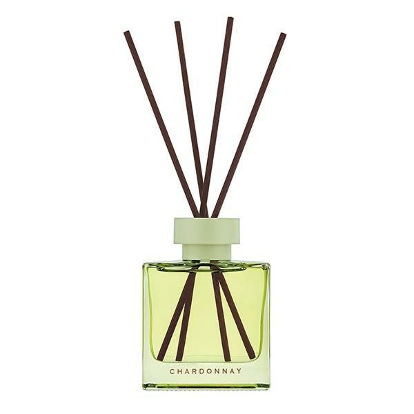 スクエア型のカラーガラス容器に存在感のあるキャップがポイントの飽きのこないデザインのリードディフューザー。お部屋のインテリアにぴったり。シトラスとウッディーノートをブレンドした透明感ある爽やかなシャルドネの香り