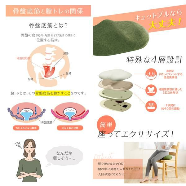 快適な生活を送るために必要な骨盤底筋群のエクササイズを簡単&効果的に行うことが出来るクッションです。