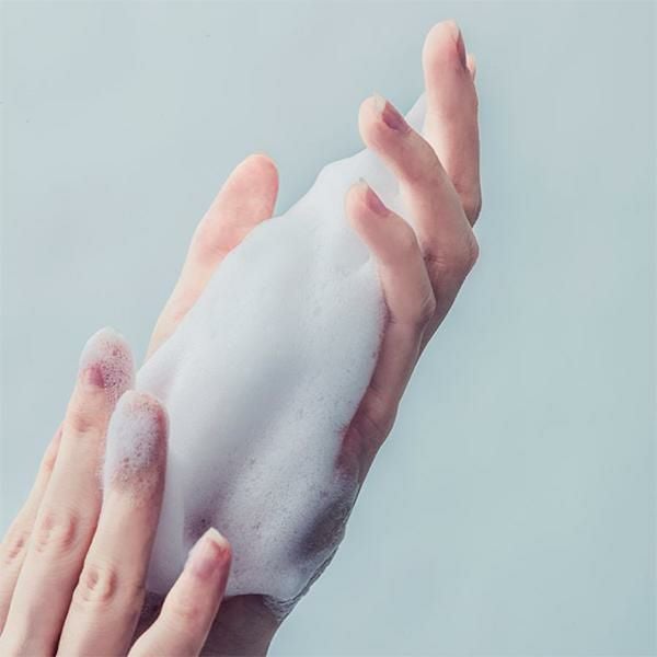 (2)適量(3プッシュ目安)を手に取り、しっかりと泡立てます。