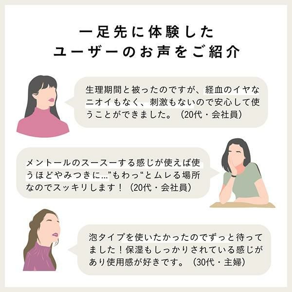 弾力性のあるフォームタイプで、デリケートゾーンはもちろん、脇や足の裏など、特にニオイが気になる部分のパーツケアに最適です。