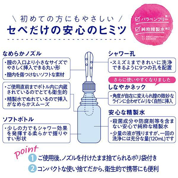 5. セぺ プチシャワー・セぺ 120ml×6本入 膣洗浄器 使い切り精製水 臭い対策 日本製 防腐剤不使用 正規品 ギフト可