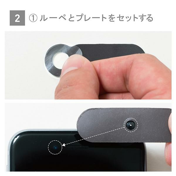 4:カメラを起動し、スマートフォンにルーペ本体をセットする