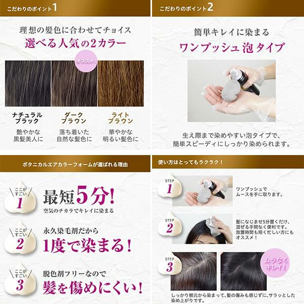 他の画像を見る 【11/23から!10%クーポン】ヘアボーテ エクラ ボタニカルエアカラーフォームEX 3本セット 簡単 白髪染め 手軽 ダメージヘア ヘアケア FUTURE LABO フューチャーラボ 正規品 ギフト可 日付指定可 送料無料 フェムケア 10%OFF セール価格 ¥ 14,850 税込 カートに入れる お気に入りに登録する