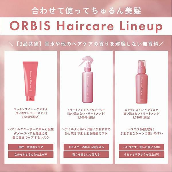 他の画像を見る オルビス ヘアケア3STEPセット 高浸透リペア美容液 毛髪補修 うるおい 美髪 パサつき 枝毛 ツヤ 無香料 洗い流さない トリートメント ダメージケア 正規品 ギフト可 日付指定可 セール価格 ¥ 3,960 税込 カートに入れる お気に入りに登録する