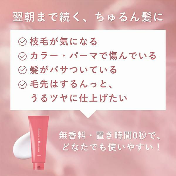 深部までうるおいで満たし、すばやく髪そのものが生まれ変わったような質感へ。