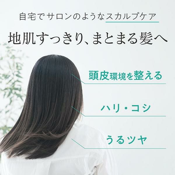○適量を頭皮、髪になじませ、指の腹やスカルプブラシで頭皮全体をマッサージします。