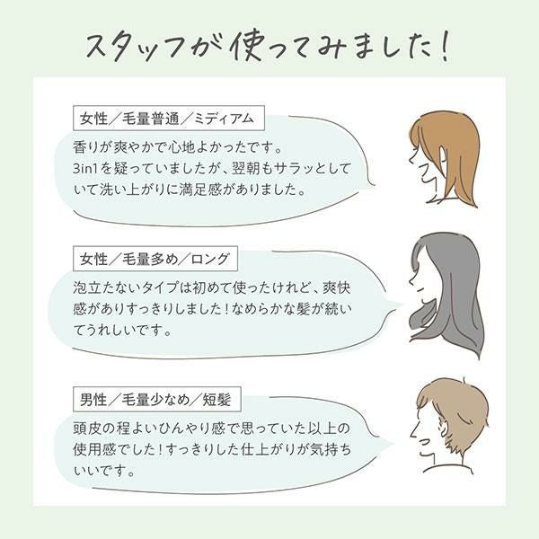 ○シャンプー、トリートメント(リンス、コンディショナーなど)のかわりにお使いください。