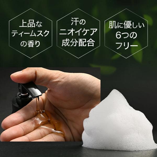 毛髪の皮脂やニオイ汚れをすっきりと取り除いてフケ・かゆみを抑え、海と植物の保湿成分が髪にハリ・コシを与えてボリューム感のある仕上がりを実現しながら、抗酸化・消臭効果とともに清潔感あふれる上品なティームスクの香りを纏わせます。