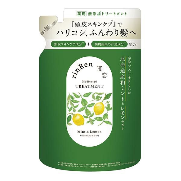 他の画像を見る 凜恋 トリートメント ミント&レモン 詰替 薬用シャンプー ノンシリコン 無添加 低刺激 乾燥 日本製 天然 オーガニック 頭皮 rinRen リンレン 正規品 ギフト対応可 日付指定可 セール価格 ¥ 1,540 税込 カートに入れる お気に入りに登録する