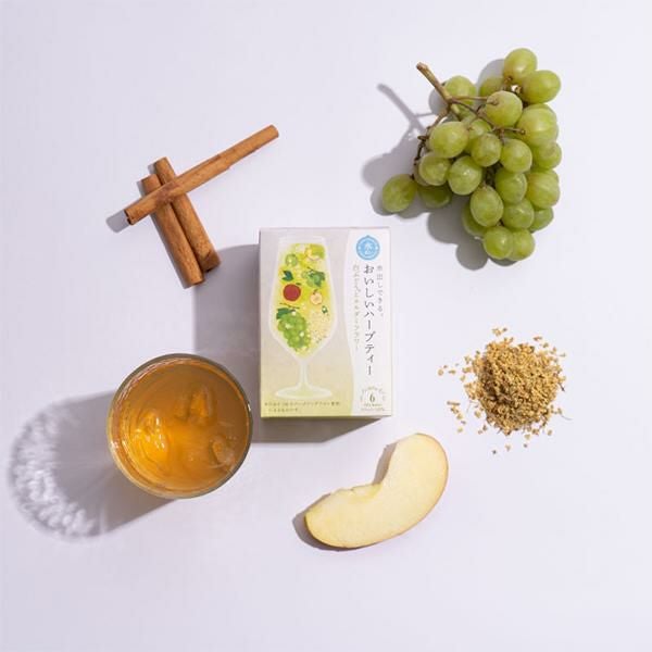 アップル、エルダーフラワーの甘く爽やかな風味とスパークリングワインフレーバーによる芳醇な白ぶどうの香りが合わさった、華やかなハーブティー。
