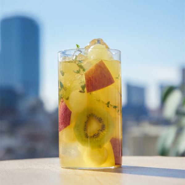よく冷えたハーブティーにカットフルーツを追加したり、冷たいジュースやハーブコーディアルを加えてもおいしくお召し上がりいただけます。