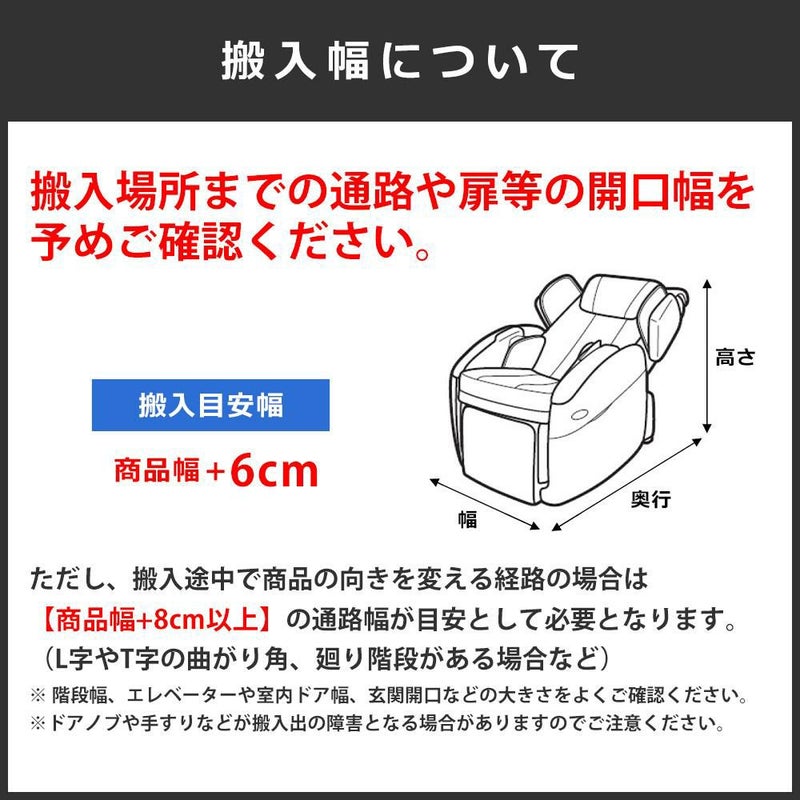 お手元のマッサージチェア搬出経路につきましては、お客様ご自身で、事前に確認を合わせてお願いいたします。