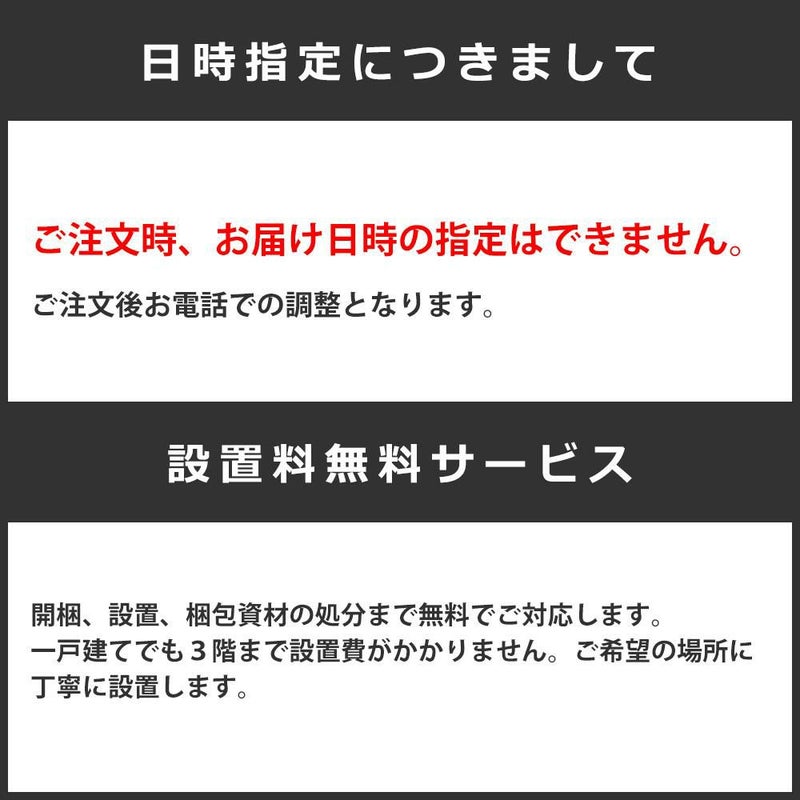 【設置料無料サービス】開梱、設置、梱包資材の処分まで無料でご対応します。一戸建てでも3階まで設置費がかかりません。ご希望の場所に丁寧に設置します。(※搬入にはドアノブや階段手すりを除いて(直進通路)73cm、(クランク通路・曲がり階段)82cmの幅が必要です)