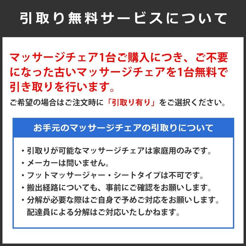 引取が可能なのは、家庭用のマッサージチェアのみとなります。(メーカーは問いません。シートタイプ、フットマッサージャーなどは不可)