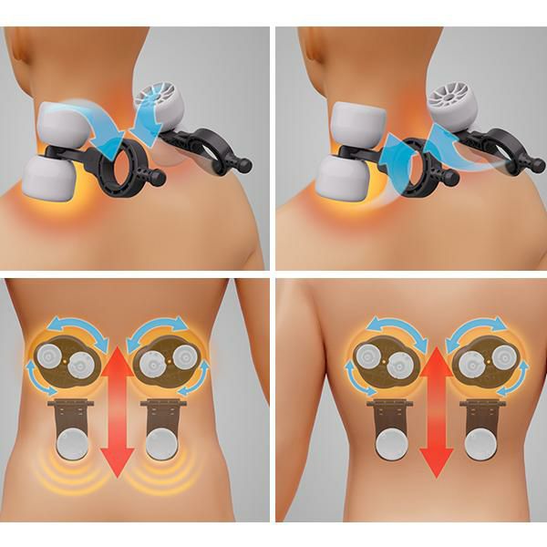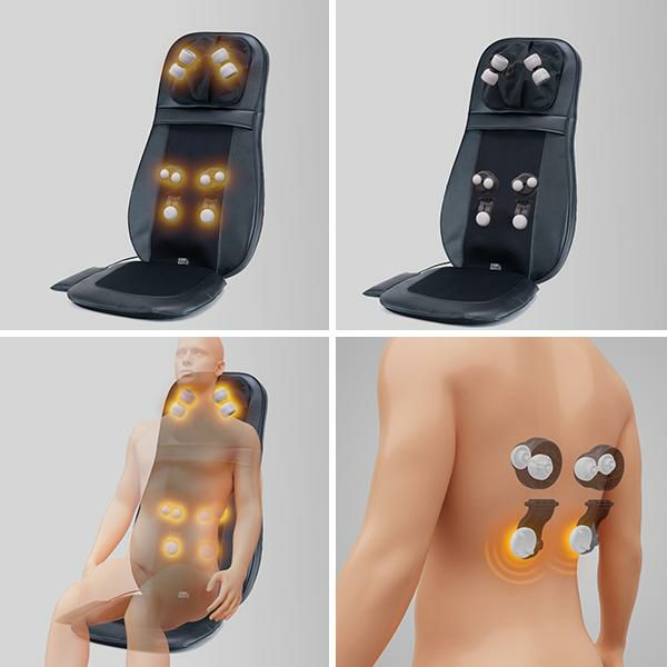 背中の6つのもみ玉にヒーターを搭載し、背中と腰まわりを広範囲に心地よく温めます。