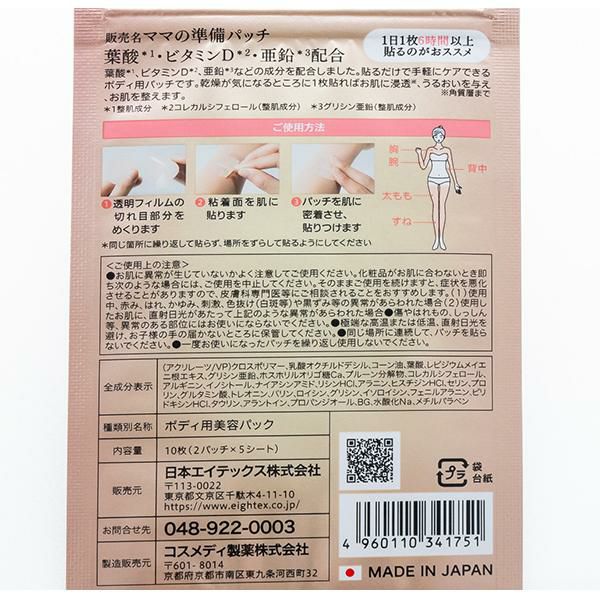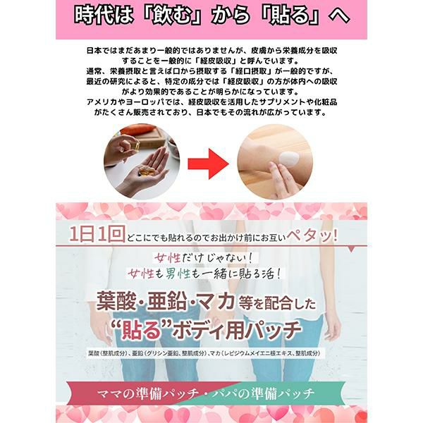 他の画像を見る ウフリ ママの準備パッチ UFL-002 浸透技術採用 角質層まで 保湿成分配合 潤い 正規品 メール便1通3個まで可 ギフト可 メール便 日付指定可 10%OFF セール価格 ¥ 1,650 税込 カートに入れる お気に入りに登録する