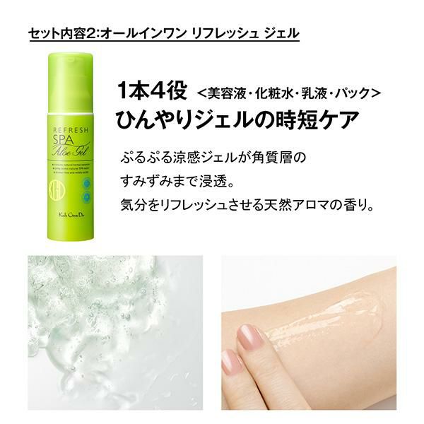 ○オールインワンリフレッシュジェルは経時などにより性状や色、匂いなど多少変化することがありますが、使用に問題はありません。