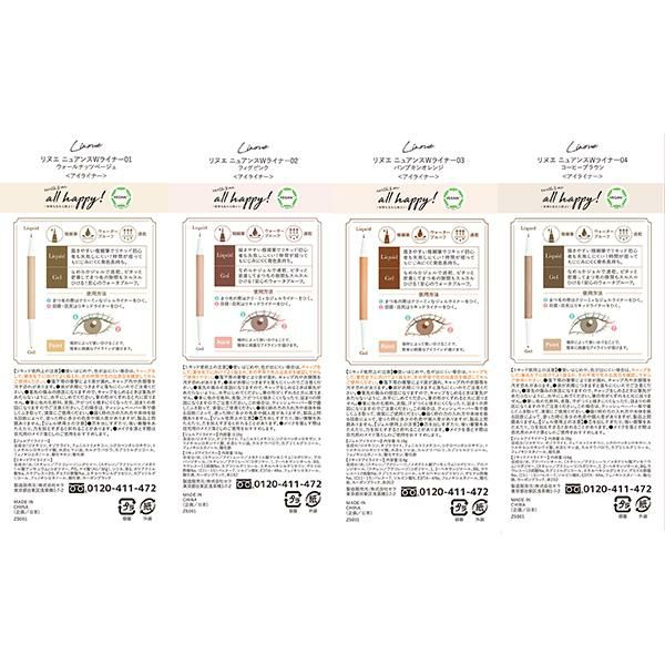 他の画像を見る 【30%OFFクーポン】リヌエ ニュアンスWライナー 極細リキッド なめらかジェル ニュアンス色味 ベスト質感 速乾 ウォータープルーフタイプ 正規品 メール便1通3個まで可 ギフト可 メール便 日付指定可 30%OFF セール価格 ¥ 1,518 税込 カートに入れる お気に入りに登録する